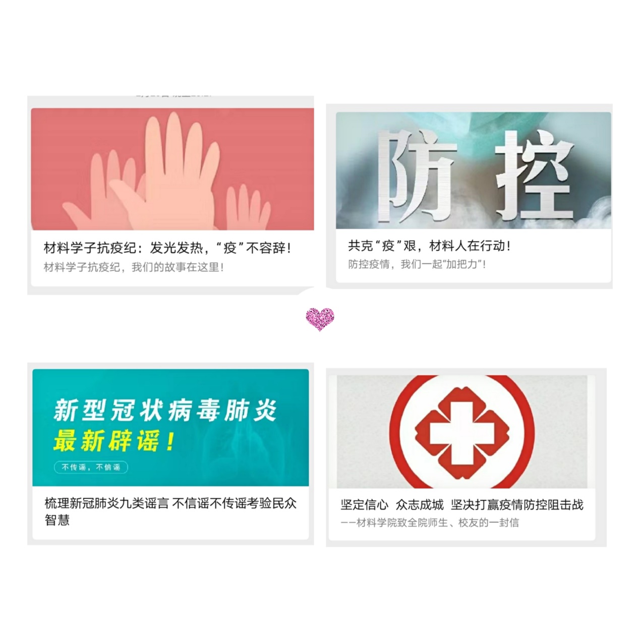 在汉学生的一封信》,传递各级组织抗疫决心,提振师生抗疫信心;通过公众号平台已累计发布疫情防控专题推文22篇,面向师生及时传达疫情信息、普及防控知识、传播正能量。