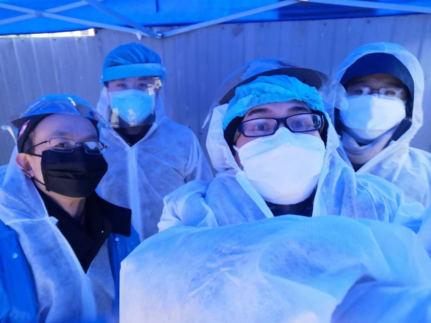——下午1点,袁新华、张日华、张文军、王曦四位老师脱下厚厚的防护服,准备交接换班。此时,他们已经在学校家属区第八网格工作了4个小时,落实小区封闭管理要求,为所负责区域内的居民提供送菜、送餐、送药到楼栋门口。此外,还有周华民、樊自田、蒋文海、廖敦明、刘鑫旺、金俊松、黄志高、朱彬、黄安国等老师参与到重点楼栋值守和网格服务工作,他们是风雨中的“逆行者”,以实际行动铸就红色防疫屏障。